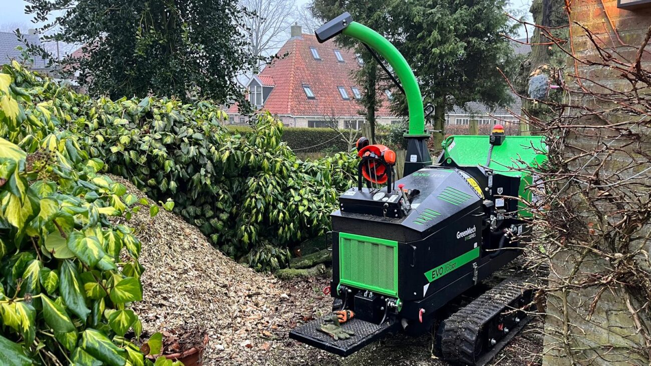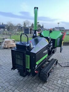Zo dicht mogelijk bij je werk met deze GreenMech rups versnipperraar. scheelt veel tijd!